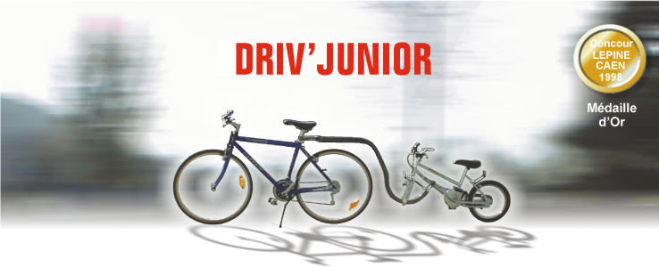 tandem un vélo adulte et un vélo enfant ( transformation de votre vélo enfant en vélo suiveur ) . Le DRIV'JUNIOR a remporté la médaille d'or du Concours LEPINE à Caen
